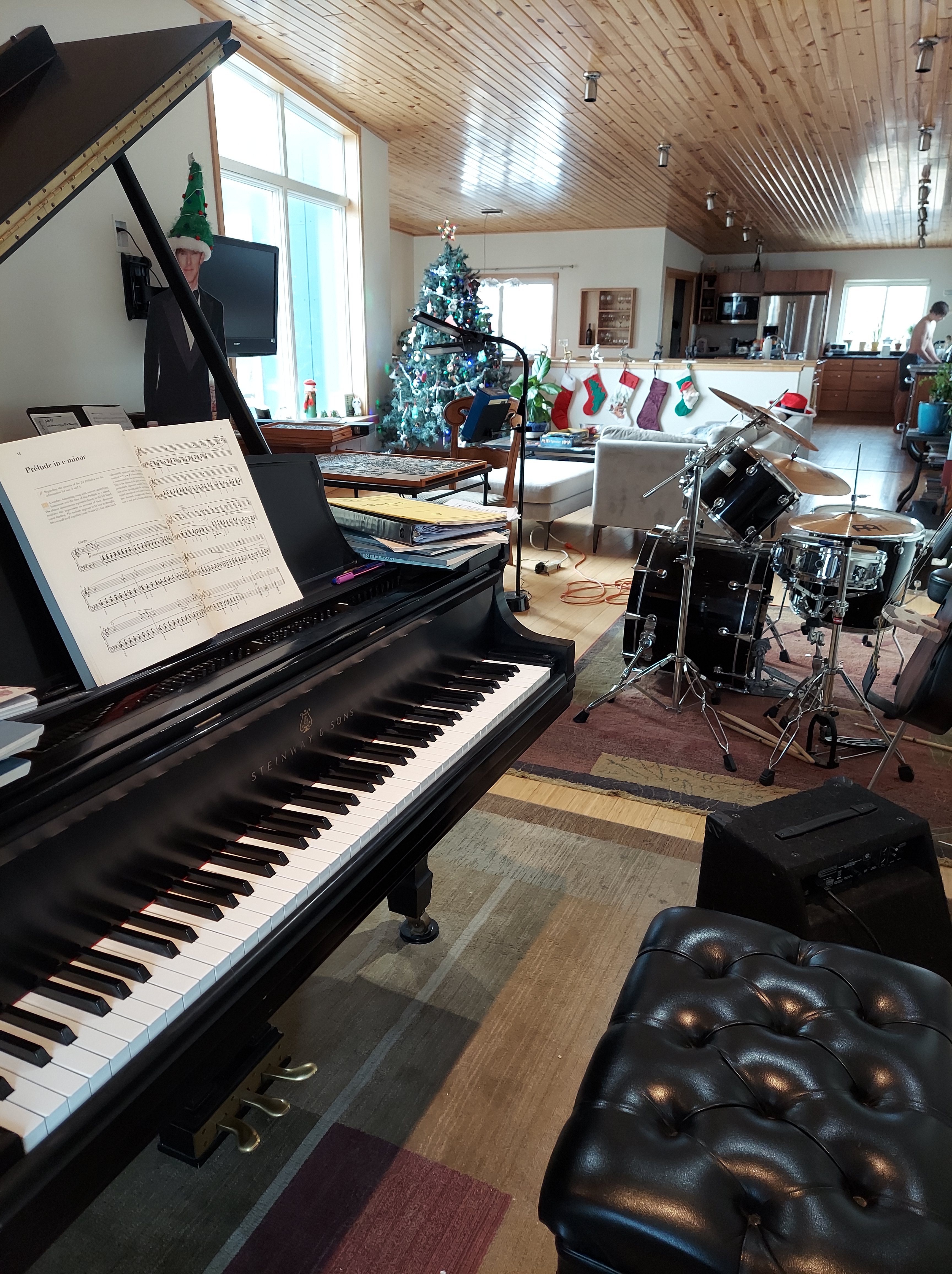 Shockingly chaotic, but not really my fault unless you count the fact that I brought four boys into the world, and these boys, now adults, have a very fun time together. After a month of holiday frivolity and debauchery, the two middle sons are en route to their schools out of state, and the house has been left much like a frat house the day after Homecoming. The more judging types might suggest that I should have done a better job raising them to be tidy, respectful of property, civilized in speech, and quiet. My answer is that not even a mother can hold back the tide, especially if that tide consists of a synth, guitar, bari sax jam accompanied by the most enthusiastic of drum set players. I am in no way regretful for this wealth of time with my boys, especially in 2020-2021, but the view from the piano must change soon. I can’t work very well under these conditions.